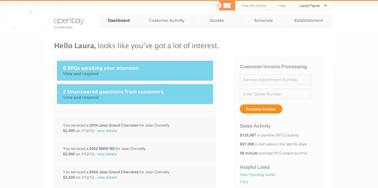 There are quite a few details in the car repair business. From collecting make / model / trim details, to identifying specific repair information, there was no shortage of design challenges to be found. One of my favorite details was helping the Openbay logo smile: